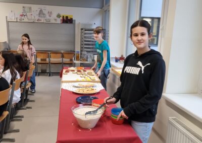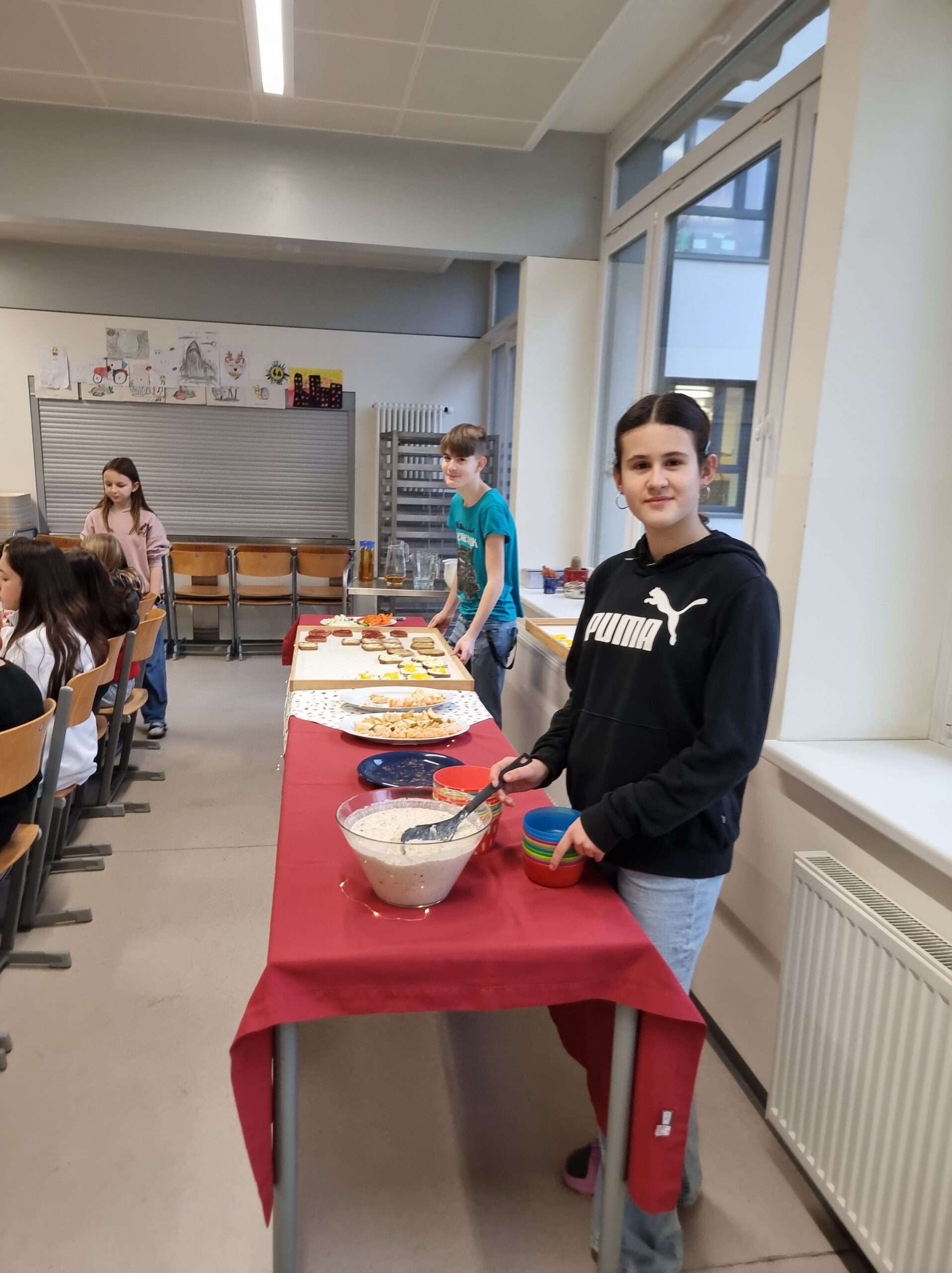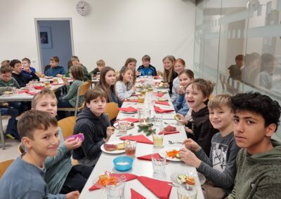 Für Bewegung und gute Stimmung sorgten abwechslungsreiche Gemeinschaftsspiele. Als Stärkung gab es ein gesundes Frühstück, das von Schülerinnen und Schüler der 3. Klasse liebevoll vorbereitet wurde.