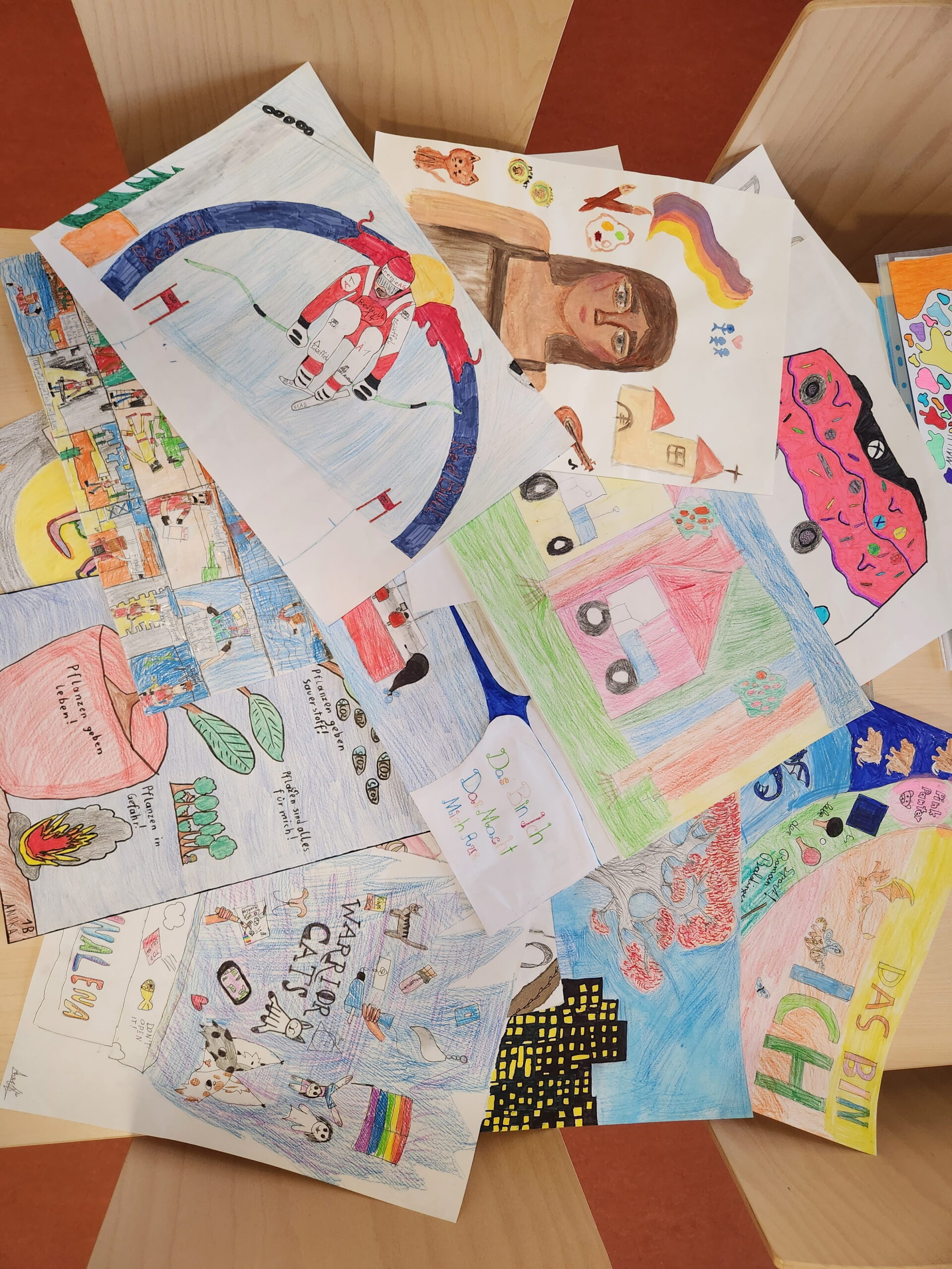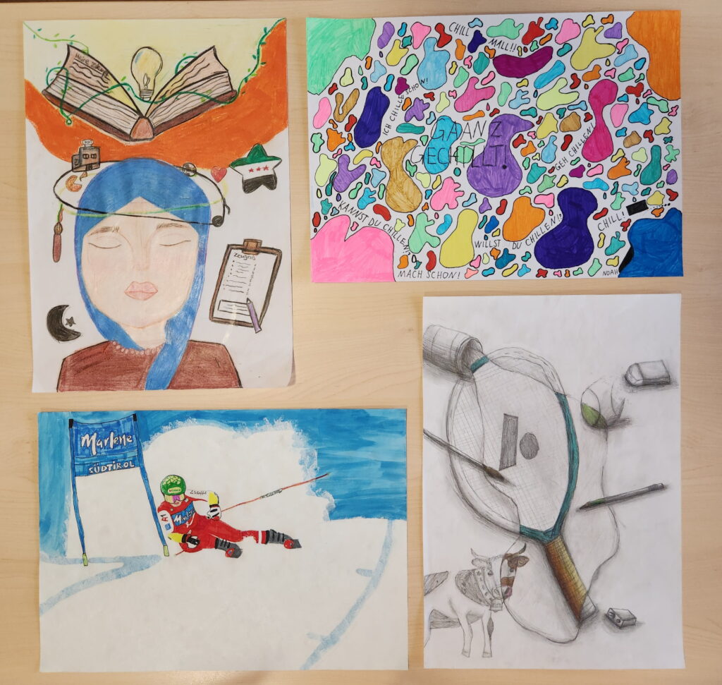 30 SchülerInnen der Mittelschule Wartberg haben im Jänner und Februar zuhause zu Bleistift und Farbtopf gegriffen und sich während der stressigen Schularbeiten- und Prüfungszeit für den schulinternen Zeichen- und Malwettbewerb kreativ betätigt. Zum Thema „Das bin ich – Das macht mich aus“ sind die unterschiedlichsten Arbeiten entstanden: Comics, Naturstudien, Collagen, Muster und und und.