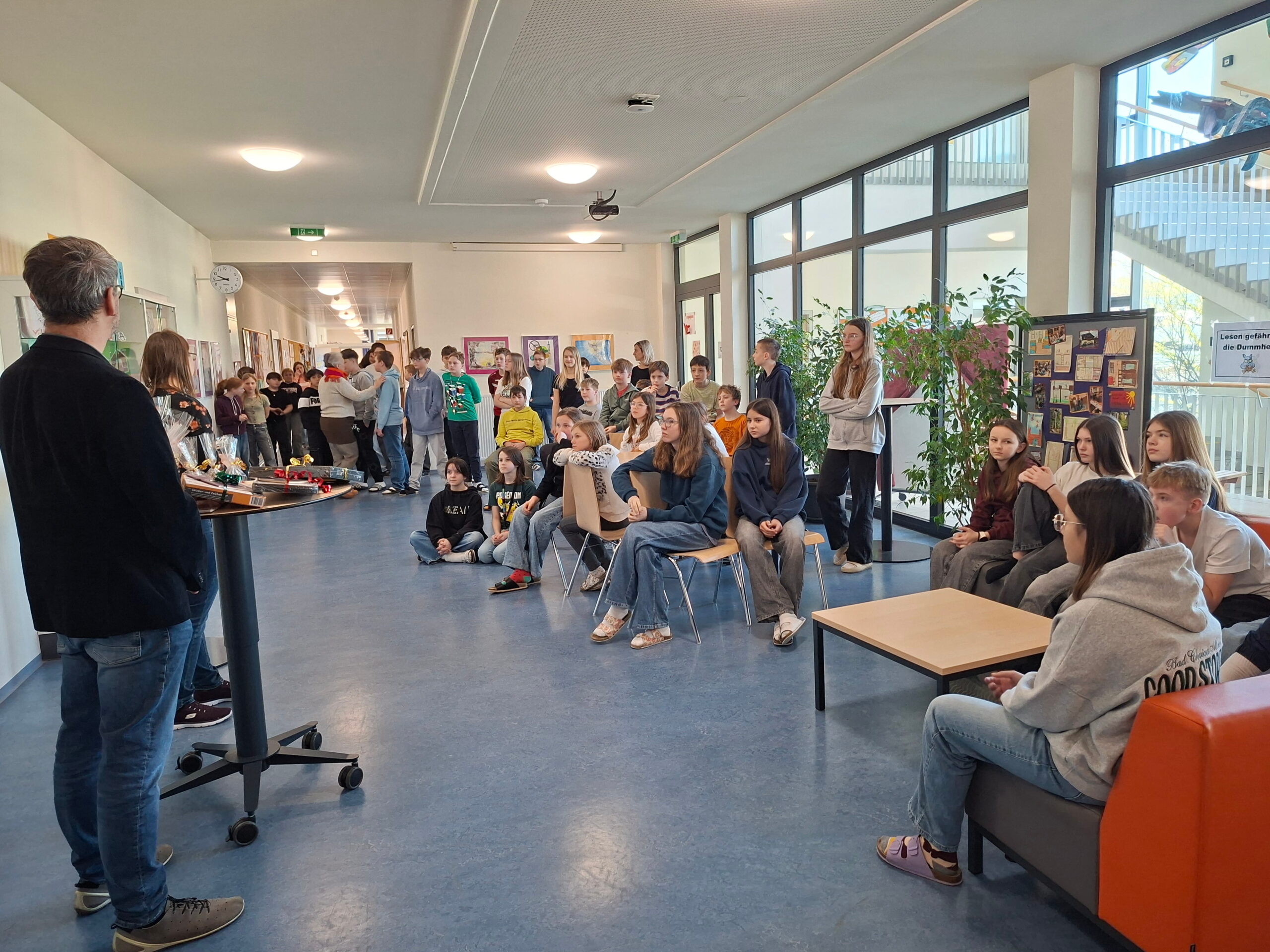 Rima aus der 4.b, Anna aus der 3.b, Armin aus der 2a und Noah aus der 1b.